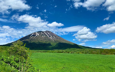 Niseko Town, Hokkaido. Yoteizan, a dormant volcano, is located nearby. Niseko Annupuri and Niseko Mountain Resort Grand Hirafu are located on the slopes of the mountain, making it one of the world's leading ski resorts and hot springs destinations. White-water rafting on the bubbling Shiribetsu River and golfing with a view of the beautiful mountains are also popular.